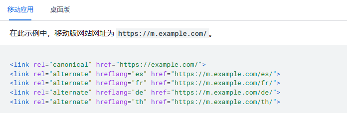 (5)检查单独网址中的 hreflang 链接。当您使用 rel=hreflang link 元素将网站国际化时,请分别与移动版网址和桌面版网址建立链接。移动版网址的 hreflang 必须指向移动版网址,同样,桌面版网址的 hreflang 也必须指向桌面版网址。
