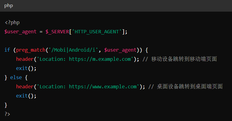 通过检查用户代理(User Agent),判断用户使用的设备,并进行重定向。